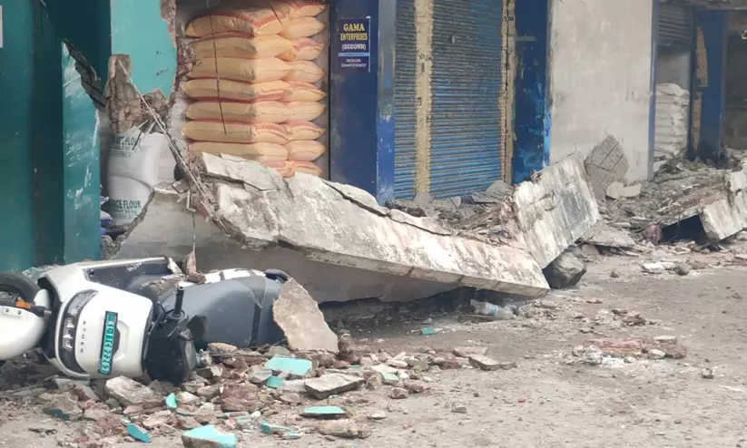 ഇന്ന് രാവിലെയാണ് സംഭവം. കാലപഴക്കം വന്ന കെട്ടിടത്തിന്റെ ഒരു ഭാഗമാണ് തകര്ന്നുവീണത്. ഇത് പൊളിച്ചുമാറ്റണമെന്ന് നാട്ടുകാര് നീണ്ടകാലമായി ആവശ്യപ്പെട്ടിരുന്നു. കെട്ടിടത്തിന്റെ താഴത്തെ നിലയില് ഗോഡൗണ് ആണ് പ്രവര്ത്തിച്ചിരുന്നത്. ഇവിടെ വരുന്ന സാധന സാമഗ്രികള് മാറ്റുന്നതിനായി നിന്ന തൊഴിലാളികളുടെ മുകളിലേക്കാണ് കെട്ടിടത്തിന്റെ ഒരു ഭാഗം തകര്ന്നുവീണത്.പഴയ പാസ്പോര്ട്ട് ഓഫീസ് പ്രവര്ത്തിച്ചിരുന്ന കെട്ടിടമാണിത്. ഇതിന് 70 വര്ഷത്തിലേറെ കാലപഴക്കം ഉണ്ടെന്നും നാട്ടുകാര് പറയുന്നു.